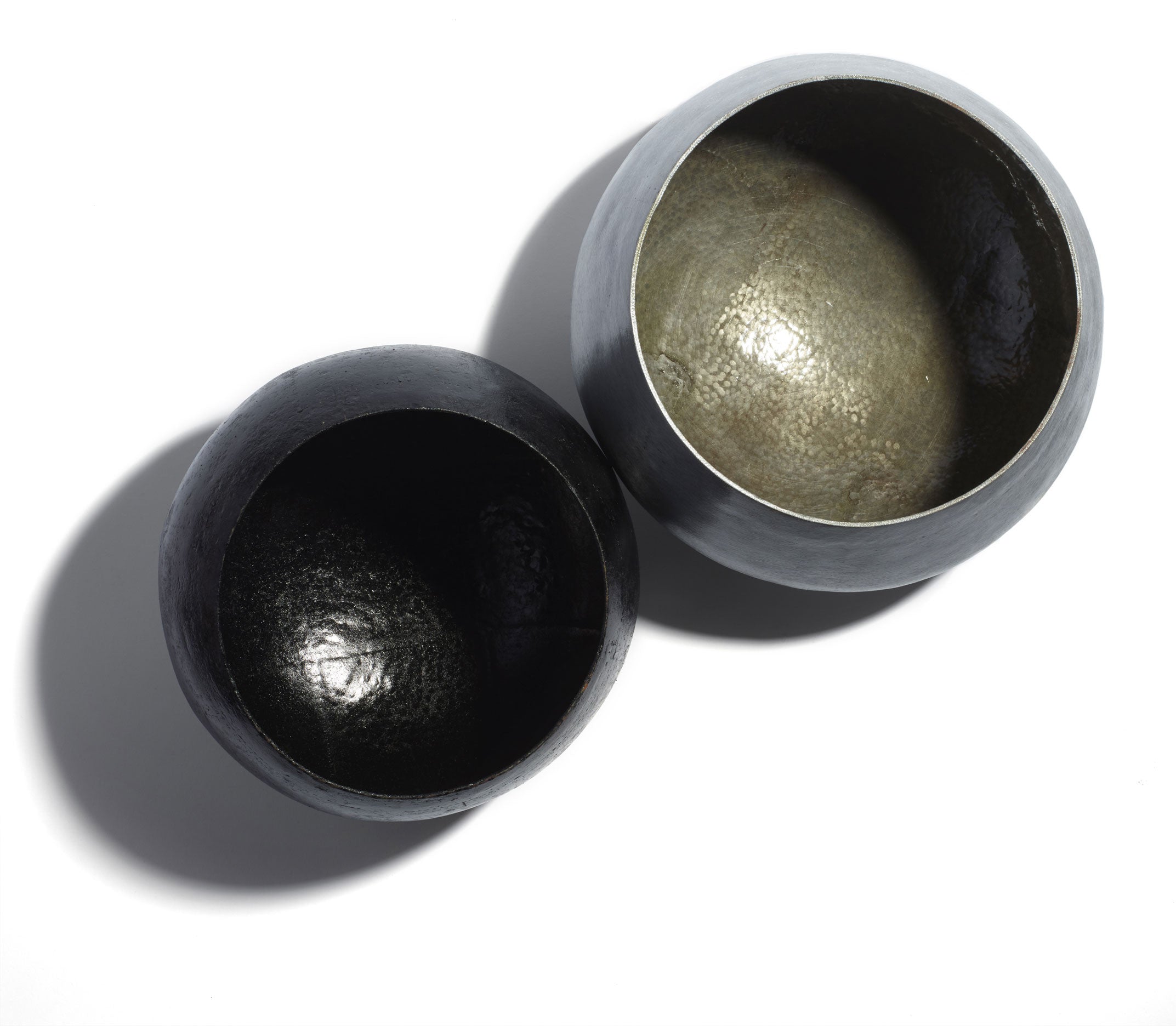 These Buddhist alms bowls were made by hand in the village of Ban Bat located in the old city center of Bangkok. S+O presents two types of artisan crafted bowls representing the bowls commonly used by both sects of Thai Buddhist monks. Forged by hand, the Maha black lacquered bowl is seven inches in diameter at the rim while the Dhammayut stainless steel bowl is nine inches in diameter at the rim. Each bowl is paired with a wooden base for display. Starting at $225.