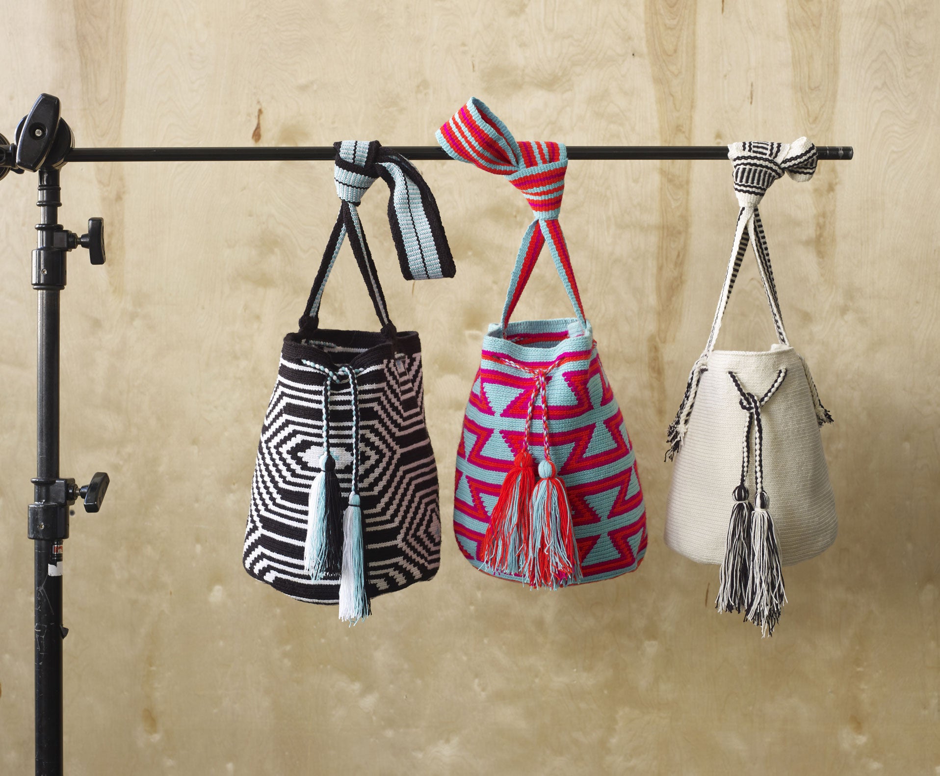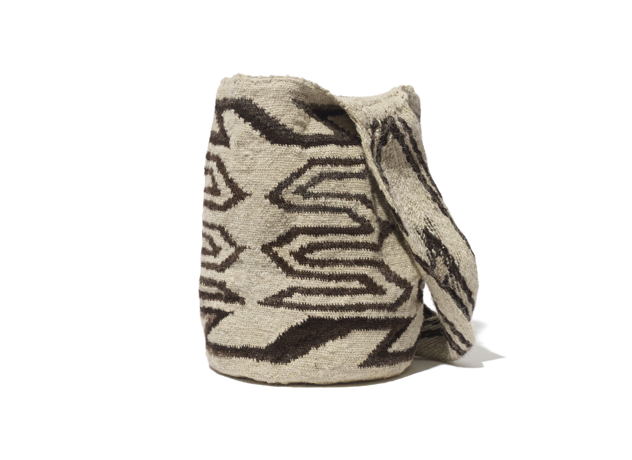 These one of a kind mochila bags were woven by the women of the Wayuu tribe in Cabo de la Vela, Colombia. Once made exclusively for members of their families and community, the graphic patterns and often vibrant coloring of the mochila have become an increasingly coveted carry-all for stylish women around the world. Currently available on Stories + Objects in brown, black and white color ways only in large or small zig zag and arrow patterns. Objects are handmade by individual artisans and may vary slightly from shown image.