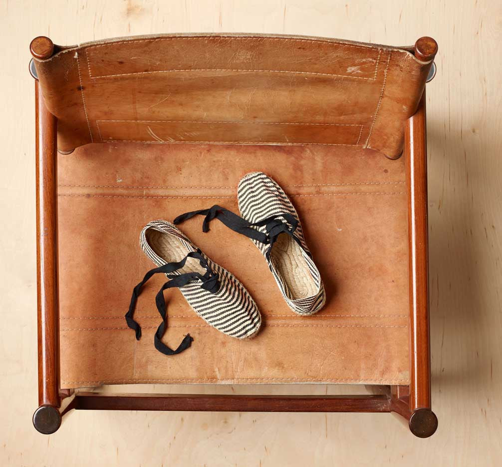 Handmade in the Mauléon atelier of the recently retired Basque shoemaker Jean-Jacques Houyou, these naturally constructed espartinak, or espadrilles in French, are fashioned from jute, cotton and rubber. This striped canvas design was notably worn by tileworkers, but reached iconic status due to early twentieth century artists and bons vivants who adopted the style.