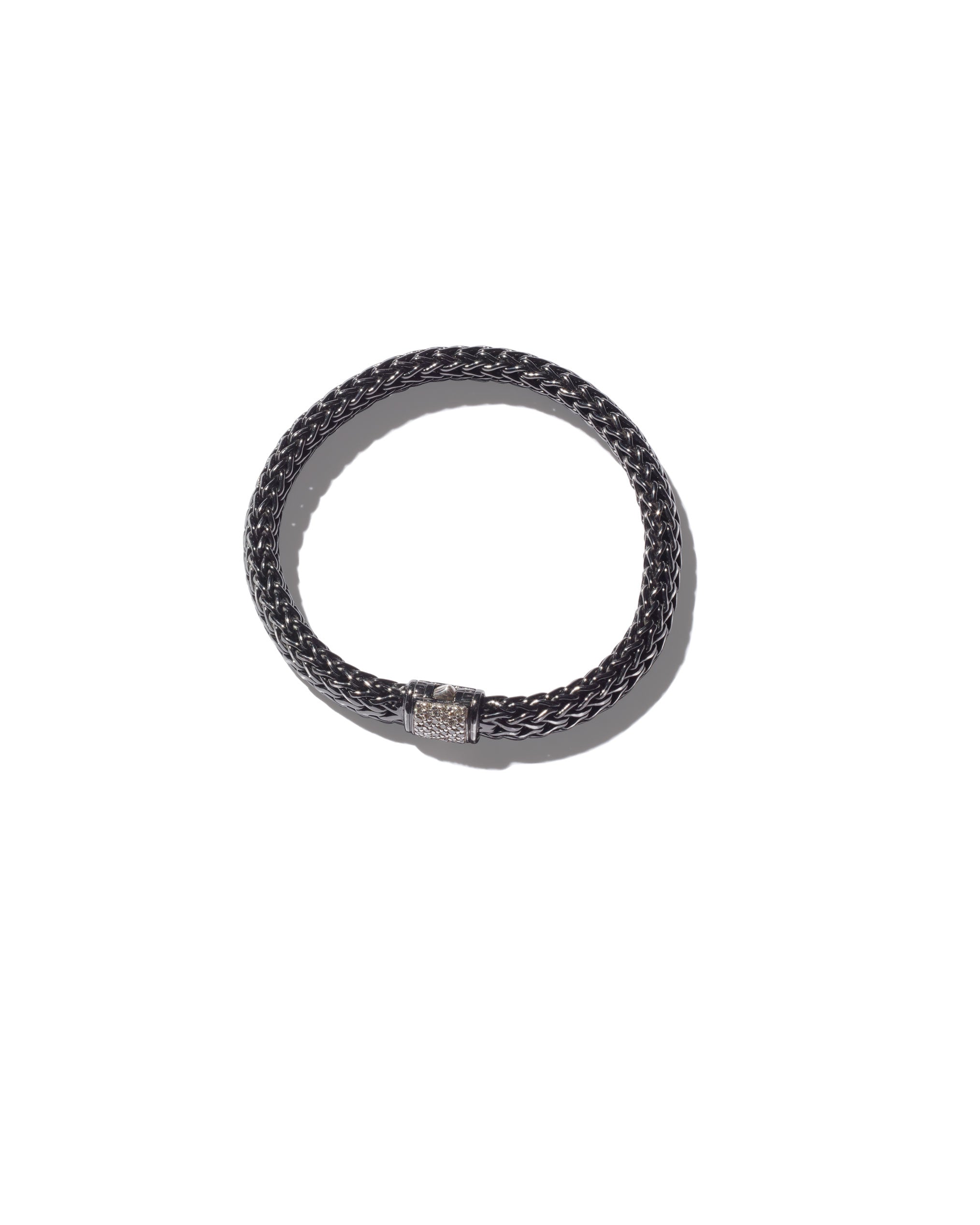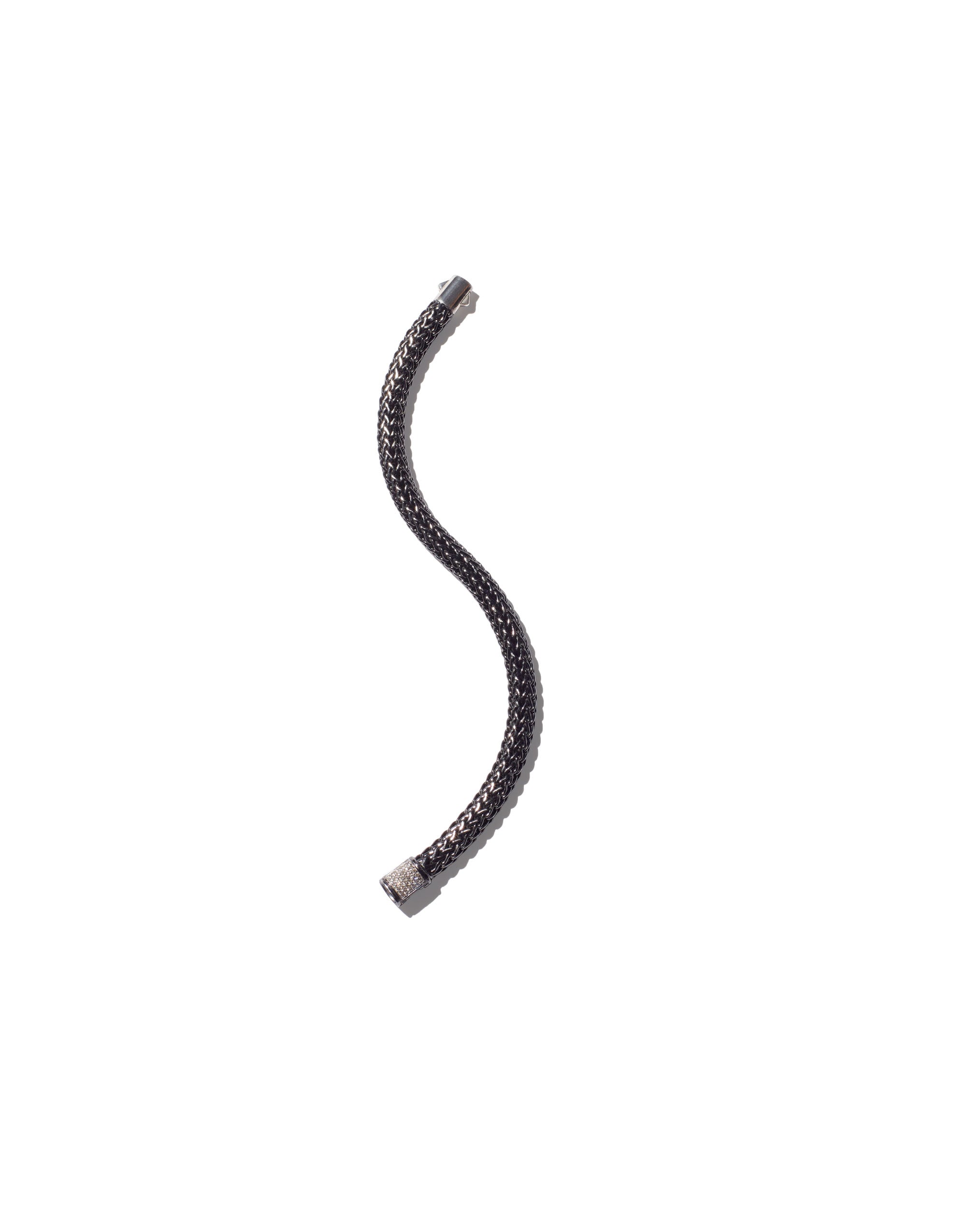 One of John Hardy’s first collections descended directly from traditional Balinese chain weaving. Chain weaving has been present in Bali for centuries, and became more and more complex and beautiful as methods flowed along the spice trade routes between Indonesia, India, China, and beyond. Each Classic Chain is the work of a single artist, from start to finish, giving each object slightly different contours, movement and feel. Silver and gold links are still woven by hand, and the finished chain is kneaded and polished. It takes four hours to weave one inch of the Classic Chain. Available readily in reclaimed silver or gold and in various gemstone combinations on their website or personalized to meet one’s own aesthetic vision per the inquiry button below.